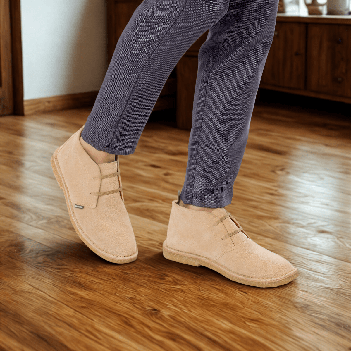 Bota Camping Taupe em couro legitimo com solado crepe em borracha látex.